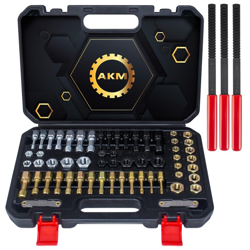 AKM 61Pcs Thread Restorer Kit, Rethread Repair Tool, UNC UNF & MetricThread Chaser Set with Thread Pitch Gauge