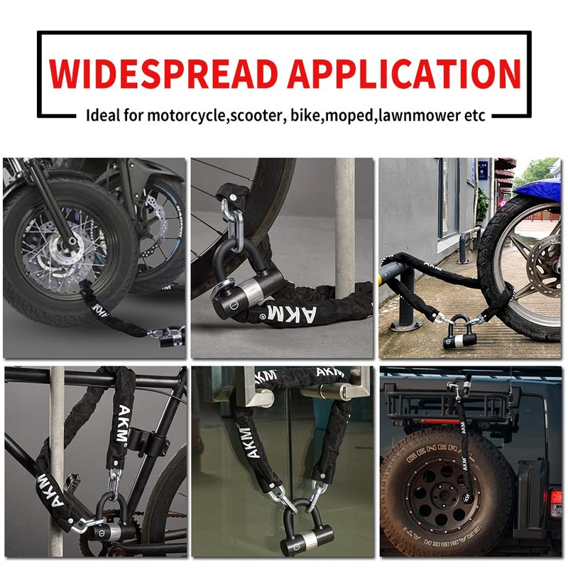 AKM Motorcycle Chain Lock 160cm/5.3ft Heavy Duty Bike Chain Lock Anti-Theft Durable 10mm Thick Ring Security Bicycle Chain Lock with 4Keys 16mm U Lock for Moped,Scooter,Motorcycles