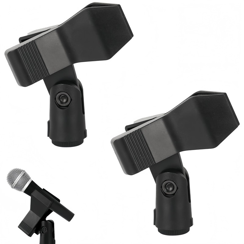 Set of 2 Microphone Holder Clip On with Screw Converter Adapter for Easy Installation (Black)