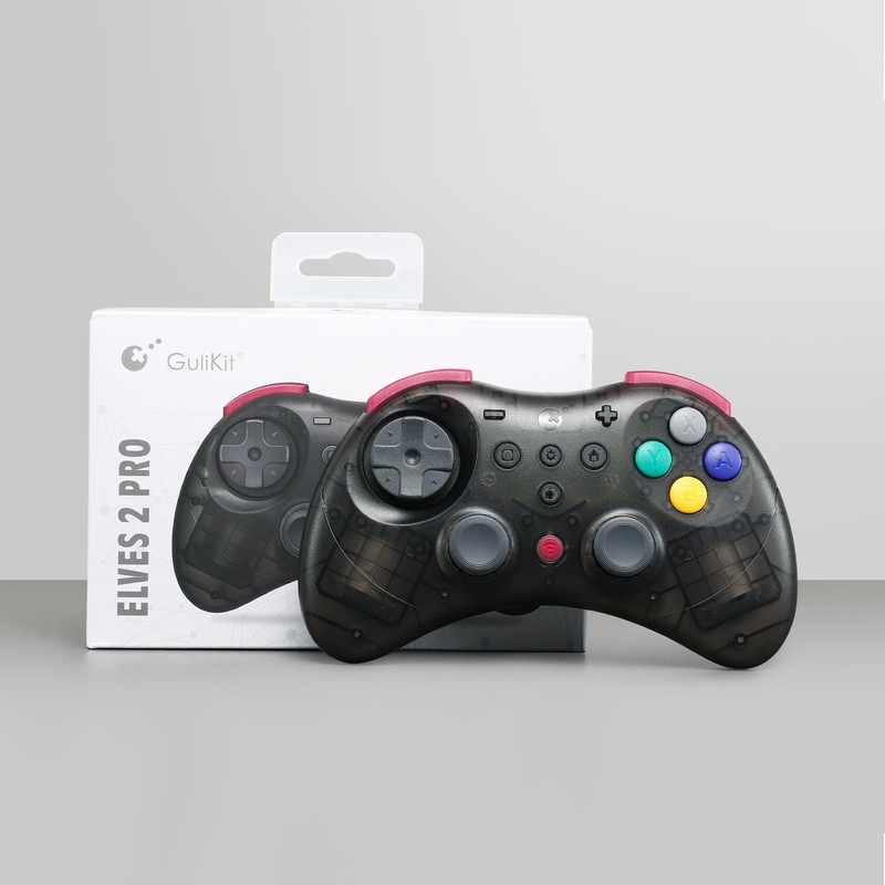 AKNES GuliKit Elves 2 Pro Wireless Controller for Switch/Switch 2, Windows, iOS and Android - Hall Effect Joysticks, 1000Hz Polling Rate, 3 Rumble Modes, Gyro Aiming - Transparent Black