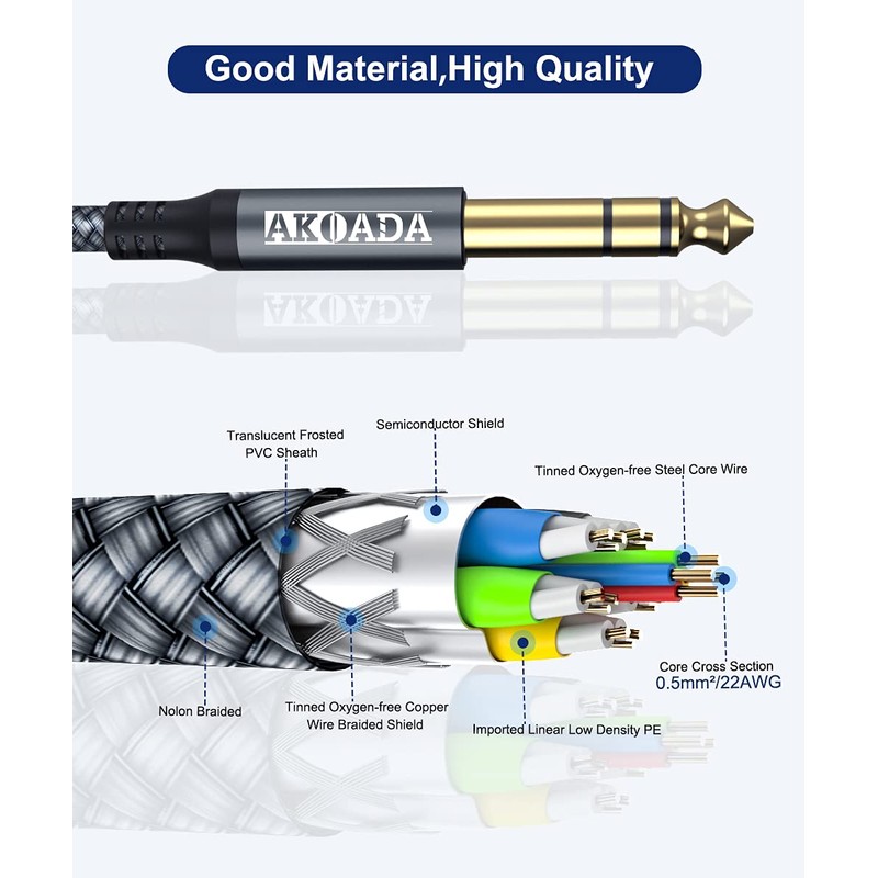 - 🎸[Strong Compatibility]: The quality cord is suitable for the devices of electric acoustic mixer, power amplifier, bass,ukulele, speaker, microphone, keyboard, pedal effector, electronic organ or drum, decoder, equalizer and other musical instrument with interface of 6.35mm diameter. Widely used in the field of smart-home devices, karaoke speaker, professional stage audio, etc.