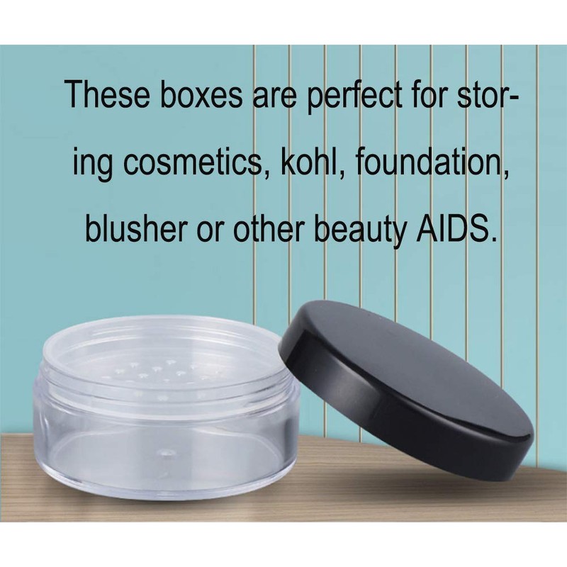 AKOAK 3 Pcs 5 g/30 g/50 g Black Lid Loose Powder Bottle Round Transparent Plastic Foundation Make-up Box Mesh Eye Shadow Powder Empty Bottle Cosmetics Container Tool (50 ML)