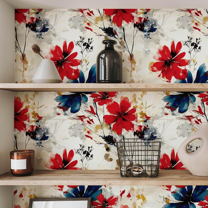 - ART DECOR WALLPAPER— This removable wallpaper combines natural flowere lements with abstract watercolors, Enhance the artistic sense of the overall space, Perfect for DIY lovers, renters,apartment, young women, couples, or shop owners looking to build a cozy, stylish interior mood