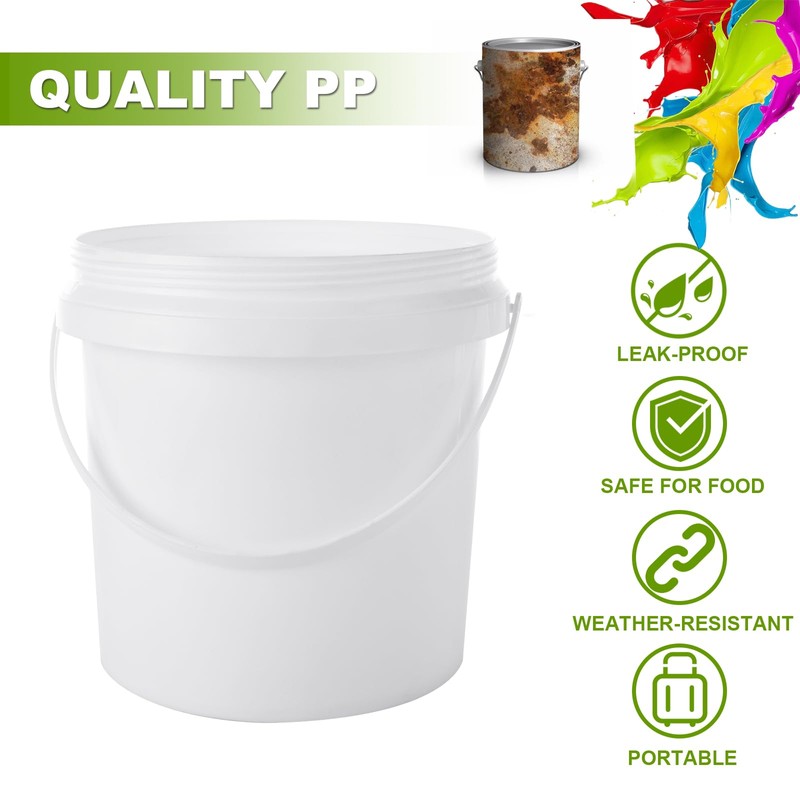 - Superior Material: No Need To Worry About Rust! Plastic Paint Can is made of Quality PP, which is sturdy, wear-resisting, non-toxic and safe for food. With high strength and bearing capacity, Empty Paint Bucket is suitable for containing various items. Lightweight and portable to use and carry with.