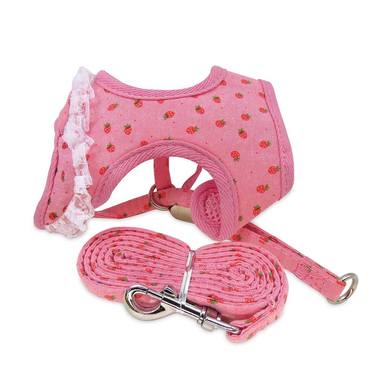 AKORD Pink Pattern Tiny Dog Harness Leash Lead Walking Chest Strap, X-Small