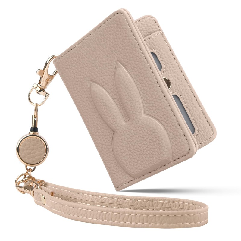 akoyo Pass Case, Commuter Pass Holder, Reel Included, B Apricot