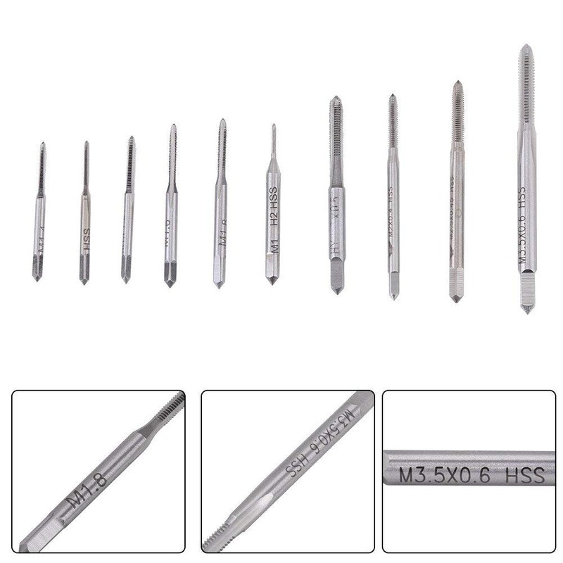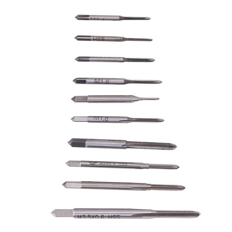 Akozon 10pcs/set Drill Tap Mini Tap Dice Set Tap M1 M1.2 M1.4 M1.6 M1.7 M1.8 M2 M2.5 M3 M3.5