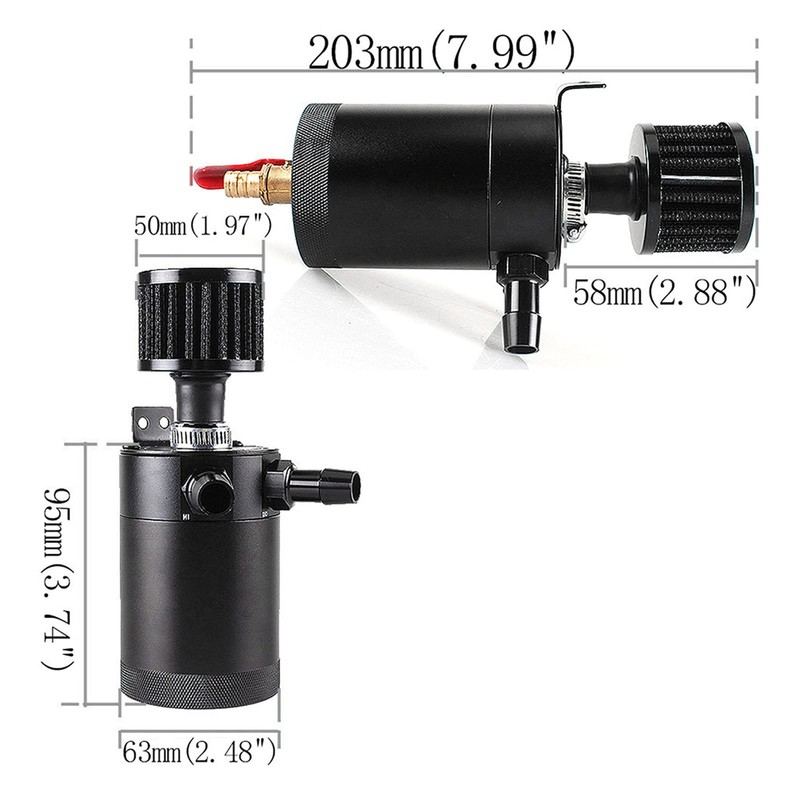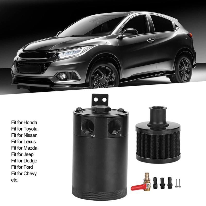 - ▶ Capacidad de 5 oz: la capacidad máxima del tanque de captura de aceite es de 5 oz (alrededor de 150 ml), tamaño compacto, fácil de usar y limpiar, ajuste universal para la mayoría de los automóviles. Equipado con filtro de aire y grifo de drenaje, ahorre tiempo y dinero.