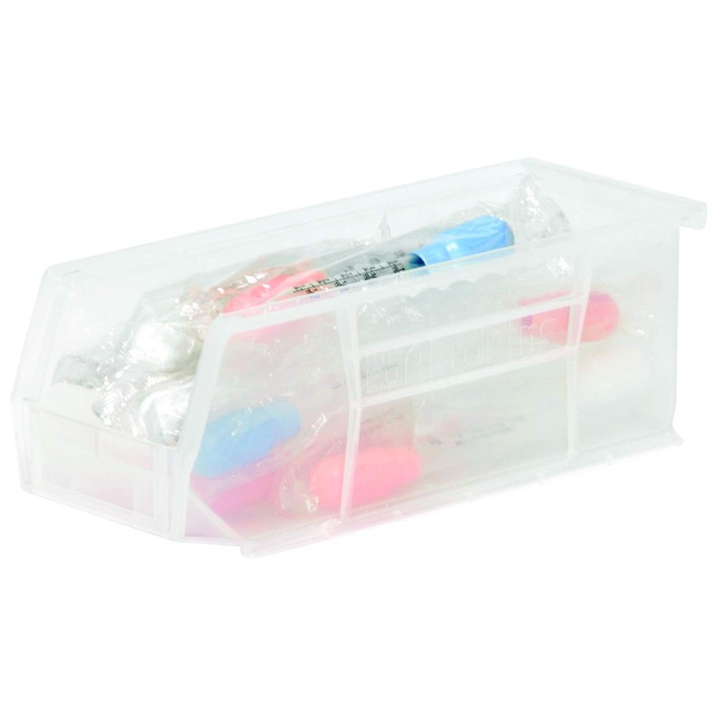 - Includes 12 clear plastic AkroBins bins with dimensions 10-7/8-Inch x 4-1/8-Inch x 4-Inch (Outside) and 10-1/4-Inch x 3-3/16-Inch x 3-3/4-Inch (Inside). Up to 20 lb load capacity.