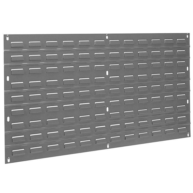 - 16-gauge cold rolled steel Akro-Mils wall panel measures 35-3/4-Inch W x 19-Inch H with 160 lb weight capacity. Powder coated grey finish.