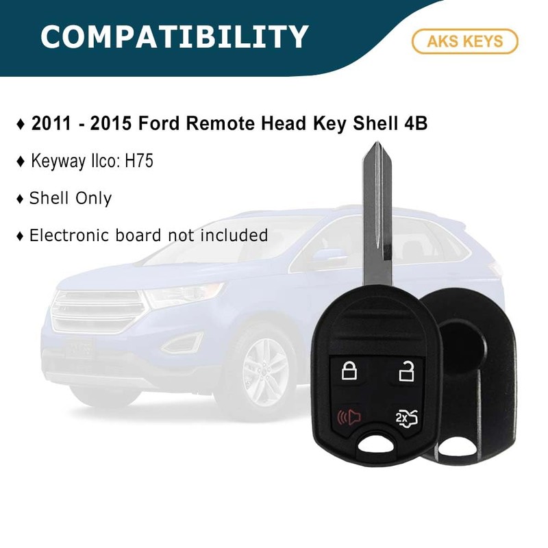 AKS KEYS New Replacement for Ford Remote Head Key Shell 4 Buttons Compatible with 2011-2015 Edge Escape Expedition Explorer Flex Focus Fusion Mustang Taurus Select Models Shell Only (2)