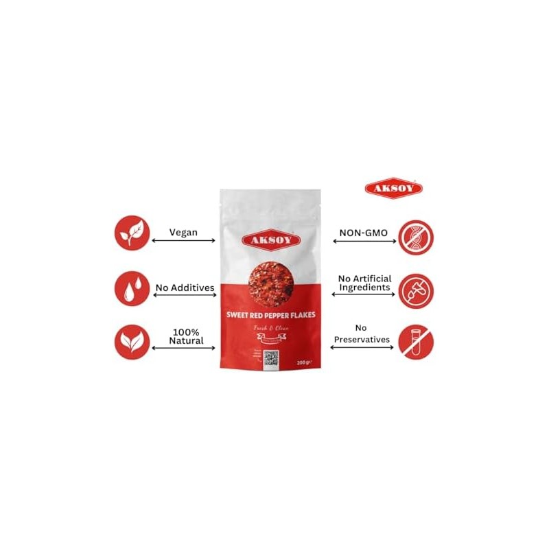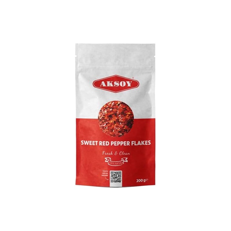 Aksoy Premium Quality Turkish Sweet Red Pepper Flakes 200GR | Flakes Size 3-4mm | Mild, Sweet & Flavorful | Perfect for Cooking, Seasoning, Garnishing & Enhancing Dishes