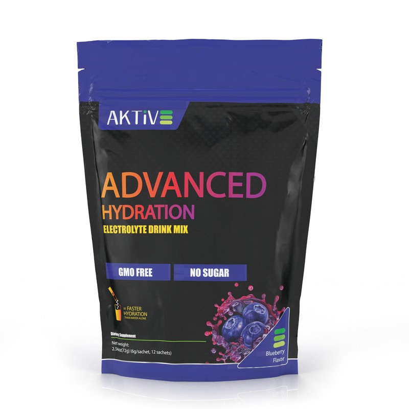 Aktive Supplements Advanced Hydration Electrolyte Drink Mix, Blueberry Flavor, Sugar-Free, GMO-Free, 12 Sachets (12 Packets, Blueberry)