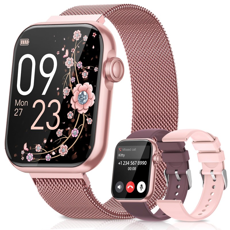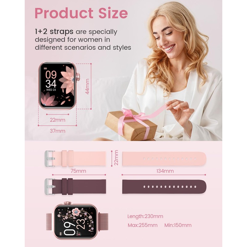 - 【Personalized Smart Watches for Women】As the latest women's smart watch in 2024, we have equipped it with 3 watch bands to choose from - the rose gold metal band is elegant and suitable for any daily occasion, and the pink and purple silicone bands are casual and suitable for matching sportswear.In addition, there are more than 200 watch face styles are optional, and you can also upload photos according to your own preferences for personal customization.