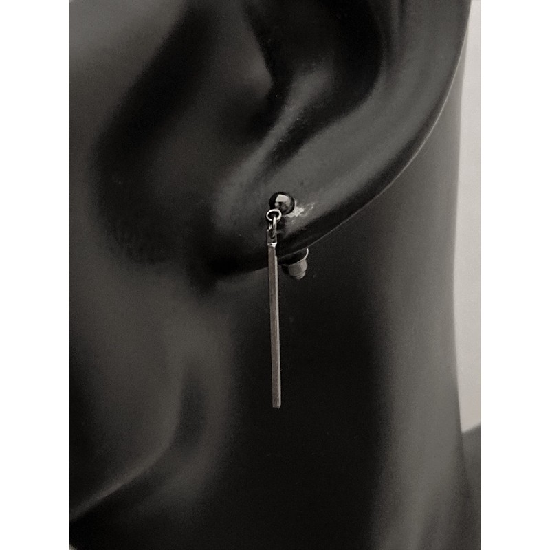 Akusetia Simple Earrings, Single Ear, Unisex, Surgical Stainless Steel, Short Bar (Metal Black)