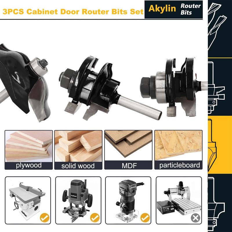Akylin Ogee Rail and Stile Router Bits,3PCS Router Bit Set 1/4 Inch Shank,Rai...