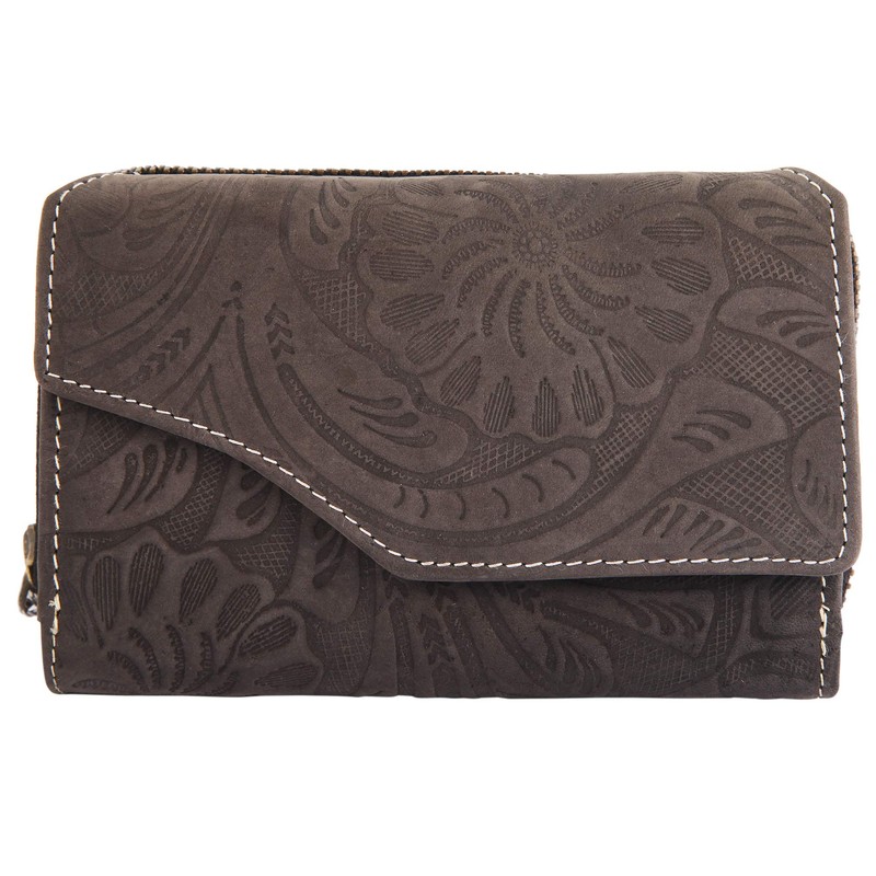 Akzent 3000073 Women's Wallet Real Leather Floral Print 8 x 14 cm Landscape Format, gray, coin purse