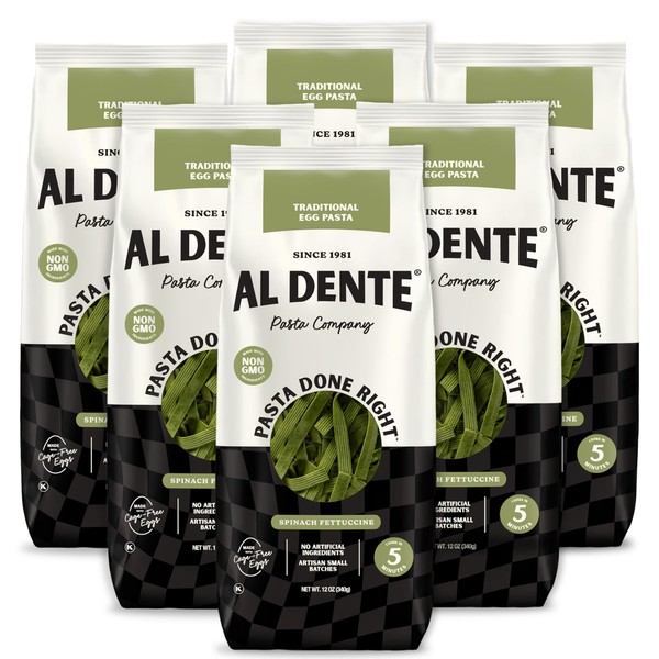 Al Dente Spinach Fettuccine – All-Natural, Hand-Crafted Egg Pasta. Traditional Pasta Noodles Made With Cage-Free Eggs, Semolina, and Spinach. Great for Pastas Soups Stews & More 12oz Bags (Pack of 6)