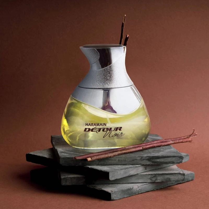 Launch year: 2021. Fragrance Family: Amber Spicy. Top notes: Almond, Jasmine, Cypress. Heart notes: Amber, Cedar, Heliotrope. Base notes: Vanilla, Musk, Sandalwood. Design house: Al Haramain. Design house category: middle eastern fragrance. Scent name: Detour Noir. Gender: Unisex. Category: Fragrance. SubType: EDP Spray. Size: 3.4 oz. Barcode: 6291100137275. Al Haramain Unisex Detour Noir EDP 3.4 oz Fragrances 6291100137275.