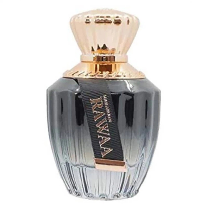 Launch year: 2018. Fragrance Family: Amber Vanilla. Top notes: Almond, Coffee. Heart notes: Jasmine, Tuberose, Orris. Base notes: Cacao pod, Vanilla, Tonka bean, Sandalwood. Design house: Al Haramain. Design house category: middle eastern fragrance. Scent name: Rawaa. Gender: Unisex. Category: Fragrance. SubType: EDP Spray. Size: 3.4 oz. Barcode: 6291100131723. Al Haramain Unisex Rawaa EDP Spray 3.38 oz Fragrances 6291100131723.