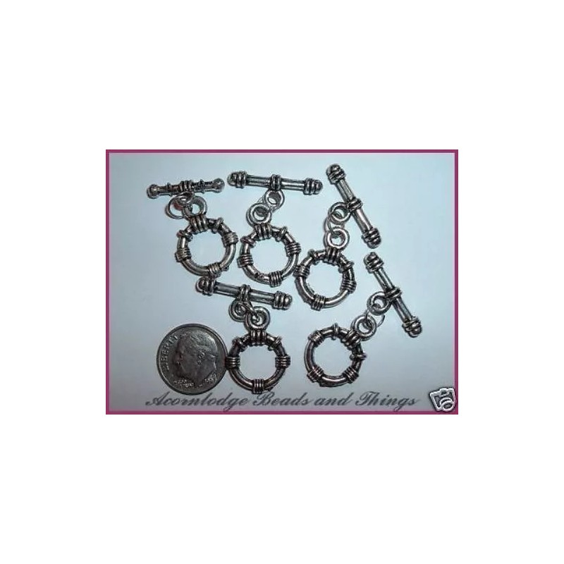 You will receive a Five (5) piece set. Each set includes Five (5) 19x9mm Toggles and Five (5) 22x16mm Loops. These are quality, heavy-duty, solid Pewter Clasps in a Antique Silver finish. What a great Nautical design! Pewter is easy on the pocketbook and will not tarnish. Great when used in a necklace or bracelet creation.