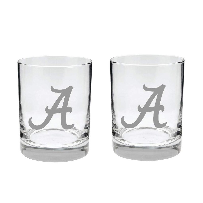 Alabama 2-Sided Etched Satin Finish Rocks Glass Set of 2