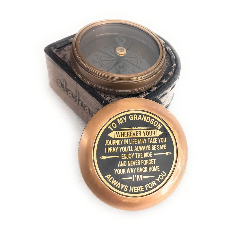 - Gift for Grandson from grandpa Grandma - Engraved Antique Style Brass Compass - Reinforcing & Reminder of Love & confidence for Grandson's Gift idea for boys on Birthday, Baptism, Confirmation, Graduation gift for Him, Boy from grand mother & grand father