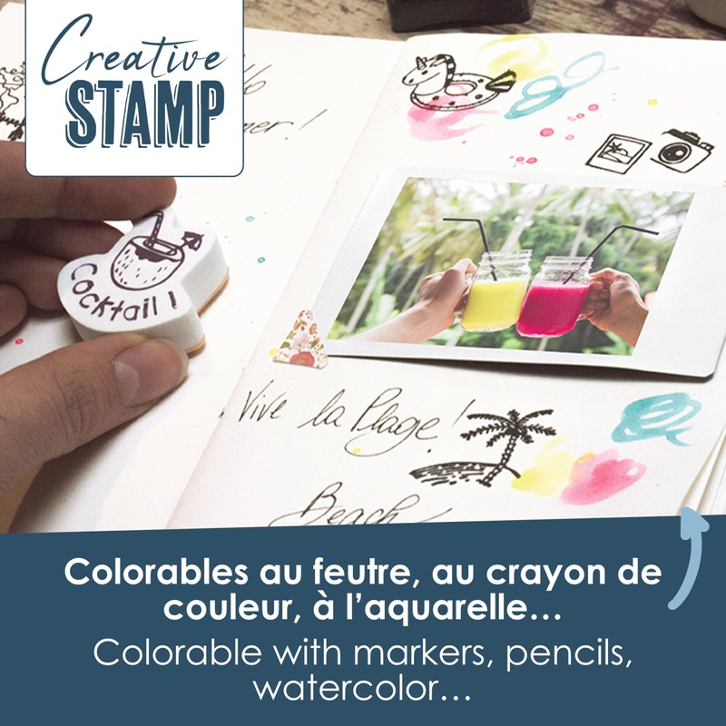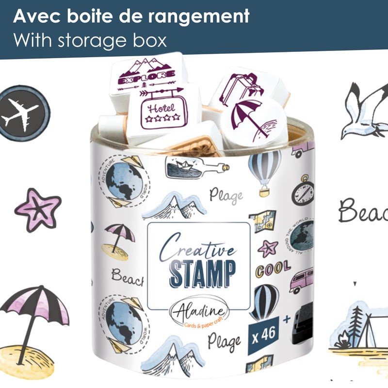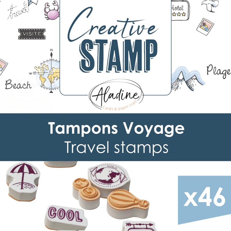 - STAMPS SET - Stamp anything, anywhere, all the time with Aladine Stampo Scrap! The fineness and originality of their drawings allow you to bring personality and creativity to your invitations, calendars, cards, notebooks, diaries, and gifts... Small size, they easily fit in your bag and accompany you when travelling or in the park to illustrate your ideas.