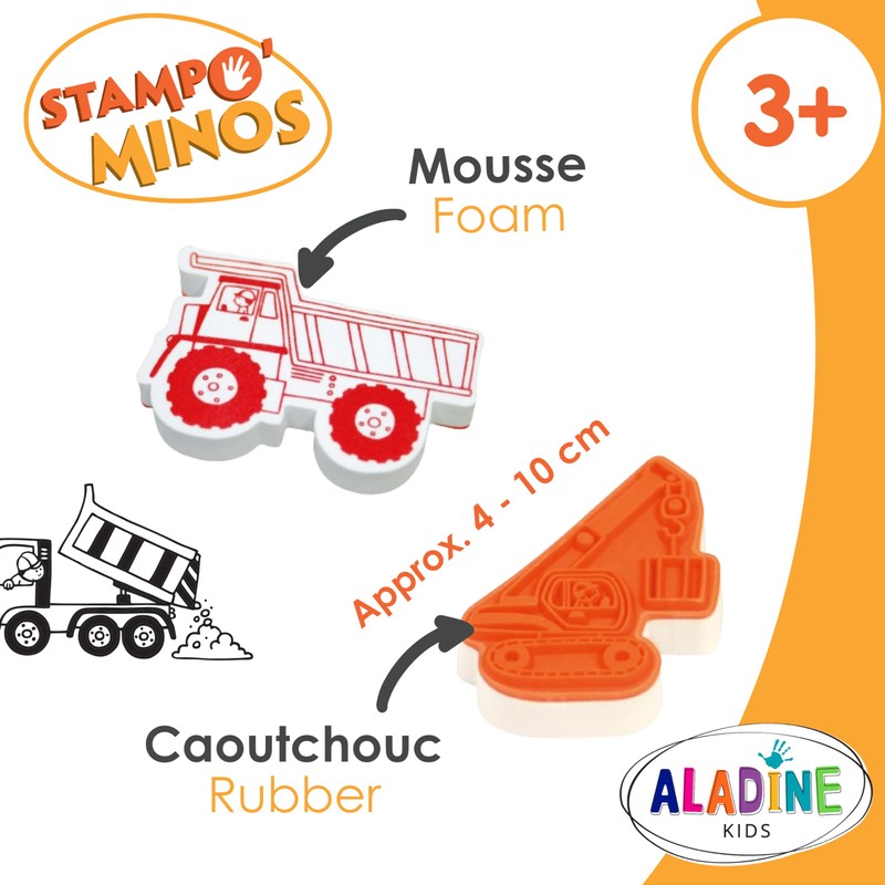 Aladine 3085127 Stempelset Minos Baustelle, inkl. 10 Stempel und 1 Stempelkissen, kreativer Stempelspaß für Kinder ab 3 Jahren, Mehrfarbig