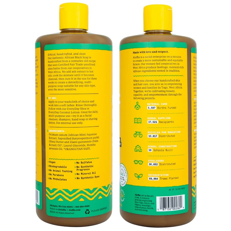 - SHEA BUTTER FOR SOFTNESS: Alaffia Authentic African Black Soap all in one facial cleanser and body wash is a natural soap for men or women, can leave skin looking brighter and soothe itchy skin. Moisturizing shea butter leaves skin and hair feeling soft.