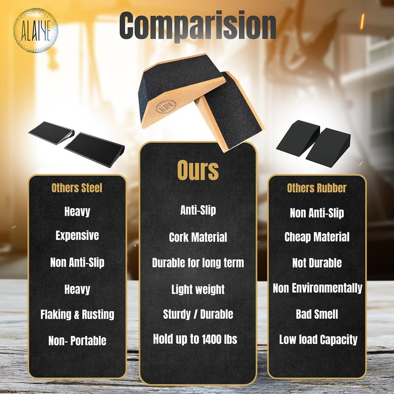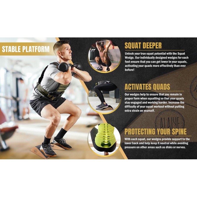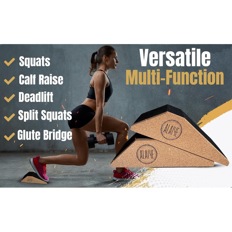 - 🏋🏽♀️ Perfect for Strength Training: ALAIYE Squat Wedge Blocks are designed to improve leg strength and hip flexibility during squats. Our squat stands pair perfectly with your strength training routine. Whether you're a beginner or an experienced athlete, these wedge blocks are essential for building muscle and increasing overall strength.