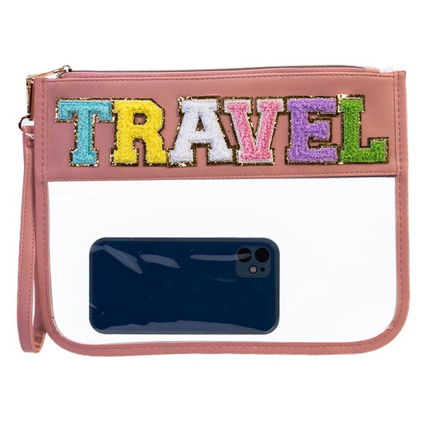 - 【Glitter Chenille Letters】: Transparent Flat Bag with Professionally Sewn Chenille Letter Patches. You don't have to worry about them falling off. These colorful letters have fun glitter borders and are sure to stand out from all the rest of your makeup bag.