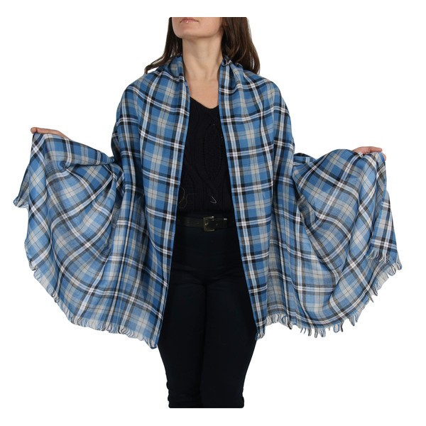 Alan Stone Soft Tartan Check Pashmina Scarf Wrap Shawl with Delicate Tassel Finishing and Free Hanger, M