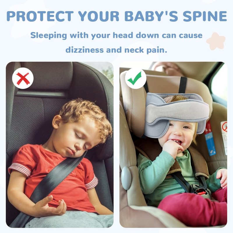 Alaoo Kids Car Seat Travel Head Support, Car Safety Sleeping Head Rest Pillow, Adjustable Infants and Baby Neck Head Support for Car Seat for Car Plane Seat Travel Journey Gray
