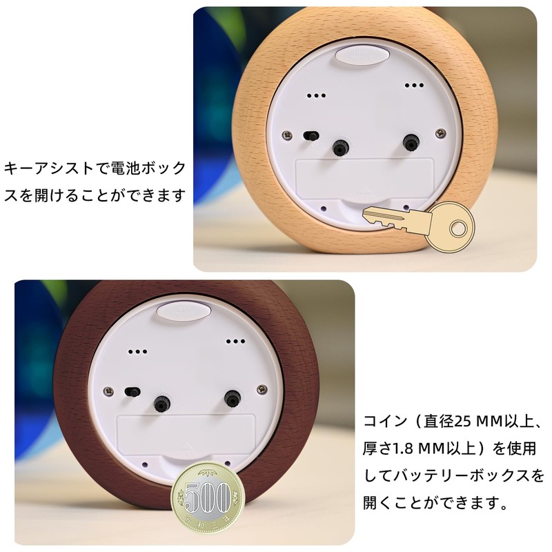 - 4-stage alarm: The alarm sound has 4 steps to increase the volume of the alarm and it is an electronic sound that changes with its vibrancy and vibration. The alarm-clock "Bibipipi Pipipipi" is familiar with the wood-like and modern ambiance