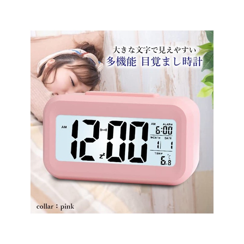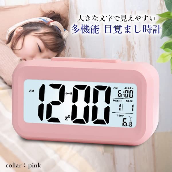 Alarm Clock, Table Clock, Stylish, Digital, Light, Easy to Read Simple, Thermometer, Multifunctional, Pink