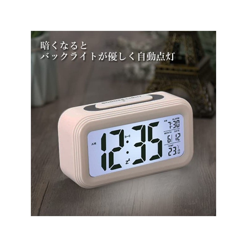 - Large text is very easy to read Besides the time, there is also a date and temperature display