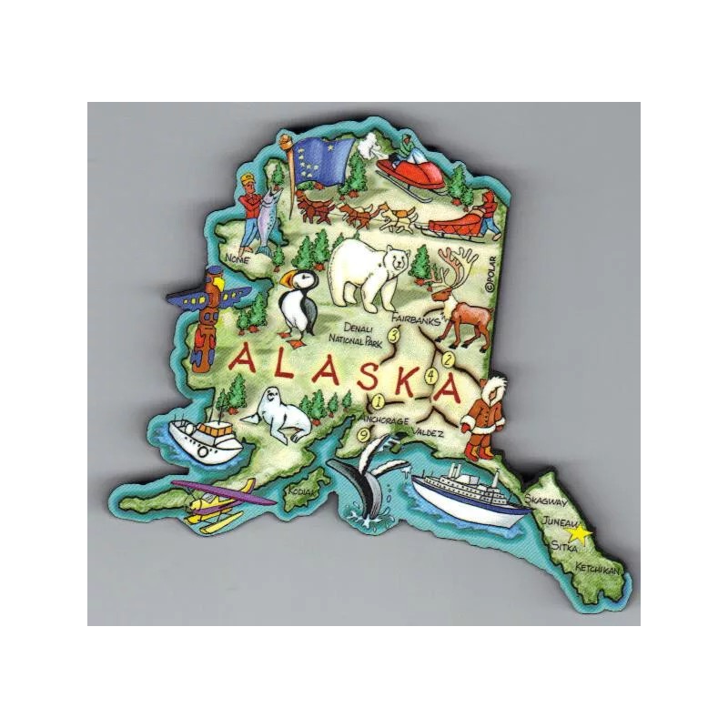 ALASKA ARTWOOD STATE MAP MAGNET DENALI FAIRBANKS JUNEAU SKAGWAY