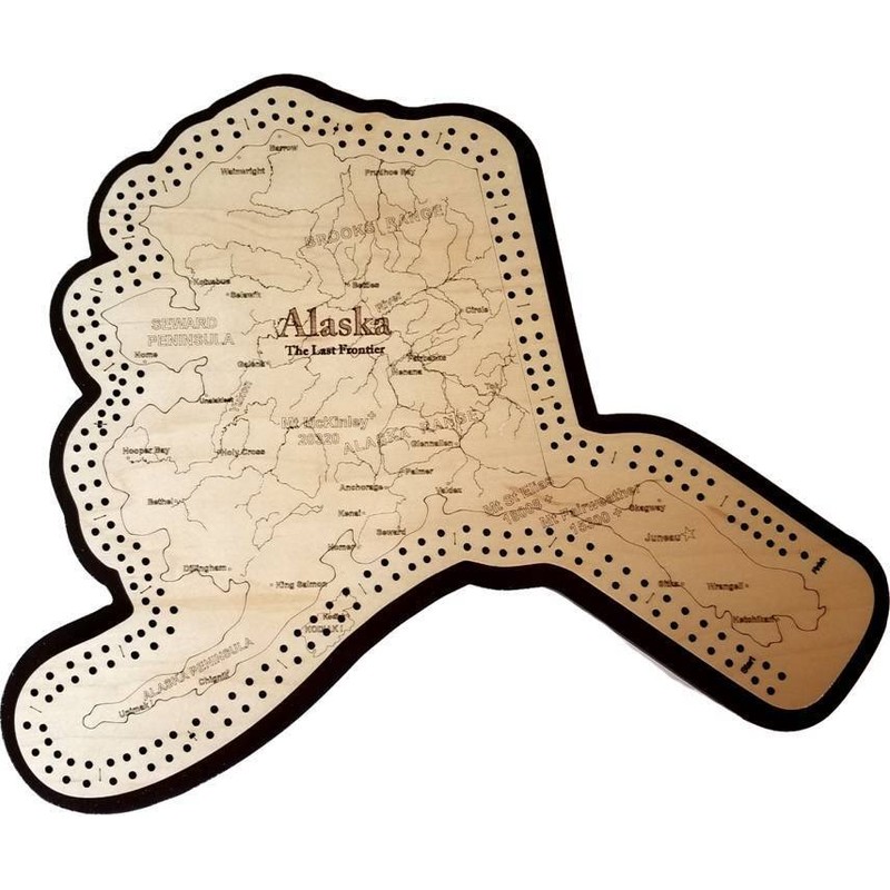 Alaska Shaped Road Map Cribbage Board