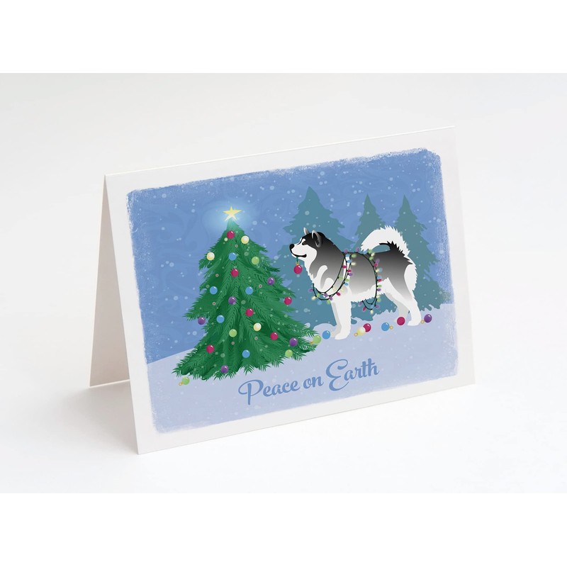 Alaskan Malamute | Dog Breed Peace on Earth Forest Christmas Cards | Pack of 6 | A2 Size Blank Note Cards and Envelopes