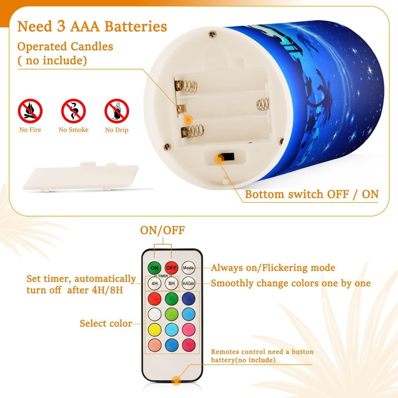 - Convenient Operation: Remote control candles allows you to set timer on your pillar flameless candles automatically turn on or off, also can adjust different flash mode lights according to your preferences, battery operated candle uses 3 AAA batteries, and the remote control uses 3V electronic buttons(Batteries are not included in this package)