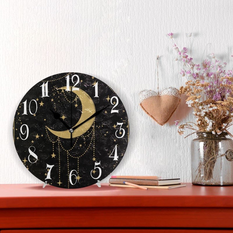 ALAZA Moon and Stars Black Round Wall Clock Non-Ticking Silent Battery Operated Decorative Clock for Living Room Home Office Decor