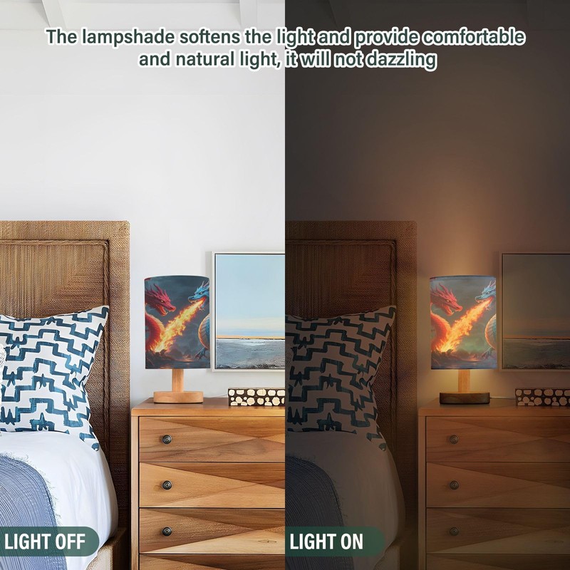 ALAZA Red and Blue Fire Dragon Bedside Table Lamp with USB Port for Bedroom Nightstand Lamps Night Light Linen Fabric Shade Cylinder Desk Lamps