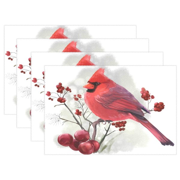 ALAZA Winter Bird Cardinal Placemats for Dining Table Heat Resistant Kitchen Table Decor Washable Table Mats Set of 4