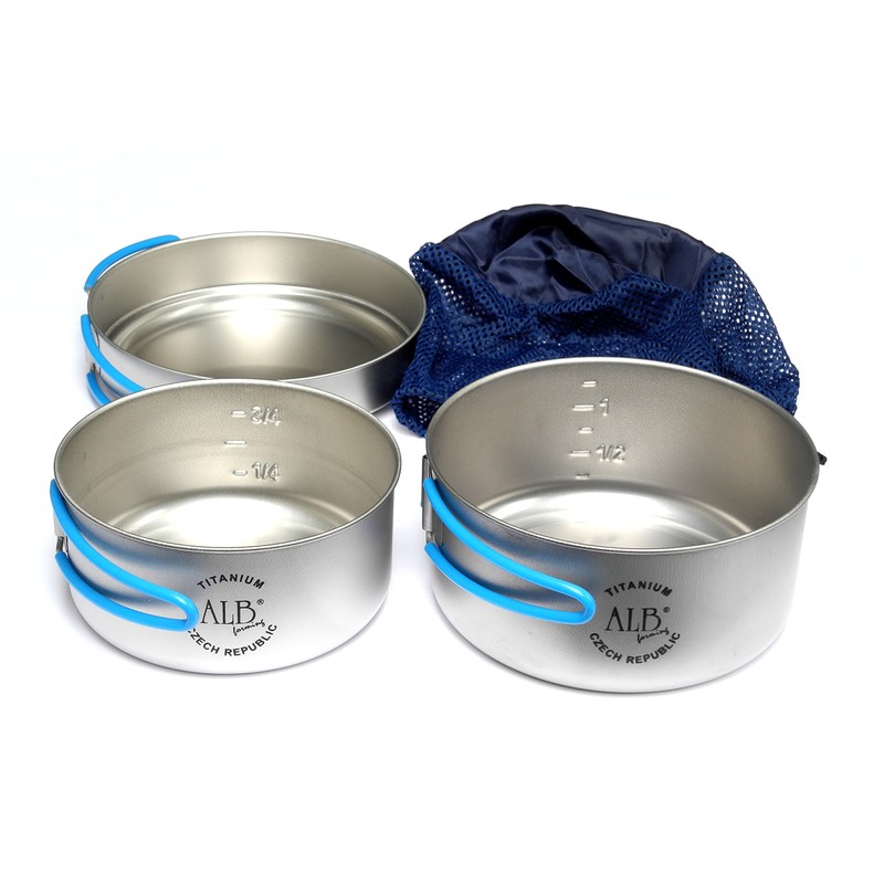 - Titanium lightweight 3 piece cooking set, mesh bag included