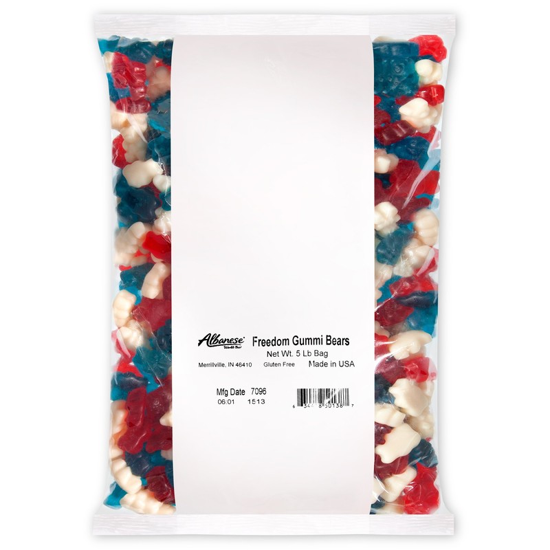 - Let your patriotism show with these red, white, and blue gummies. The Albanese Freedom Gummi Bear mix features the World's Best Gummies with their bold fruit flavors and unique soft chew in colors that say "I'm proud to be an American!"