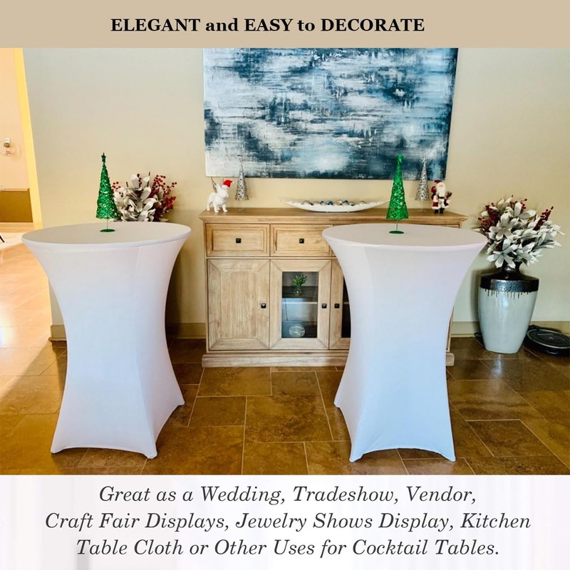 Albassa 6 Pack Cocktail Table Covers 32"x43" Spandex Stretch Highboy Top Tablecloth Fitted Round Table Cloths for Bar Wedding Cocktail Party Banquet Tables (6, White, 32"x 43")