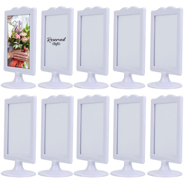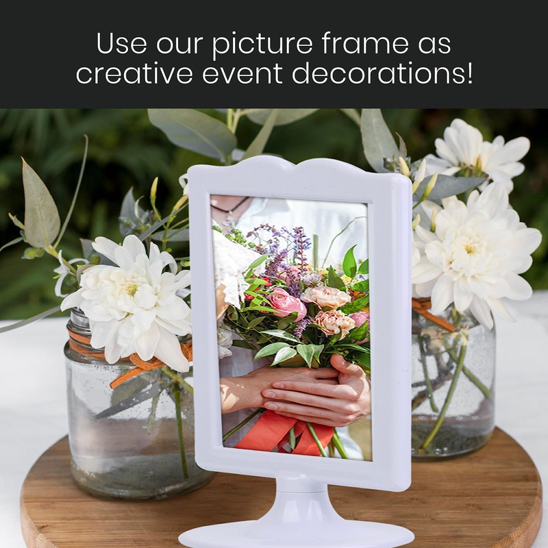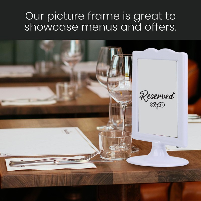 - GREAT FOR BUSINESS ESTABLISHMENTS - These tabletop pedestal frames will elegantly showcase menus, offers, wedding table numbers, ads, and reservations. Engage more with consumers with these eye-catching double sided frame display