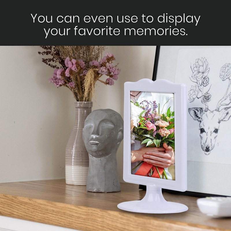 Our tabletop frame set will stylishly showcase your menus, offers, sales promotions, specials of the day, advertisements, table reservations and anything you want to communicate through a 4x6 image. Convenient advertise your messages with the 2 sided 360-degree view for maximum visibility.