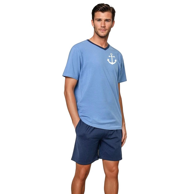alber's Mens Summer Pyjamas 2 Piece Set Short Sleeve Top and Matching Shorts Elastic Cotton, Fant 2, L